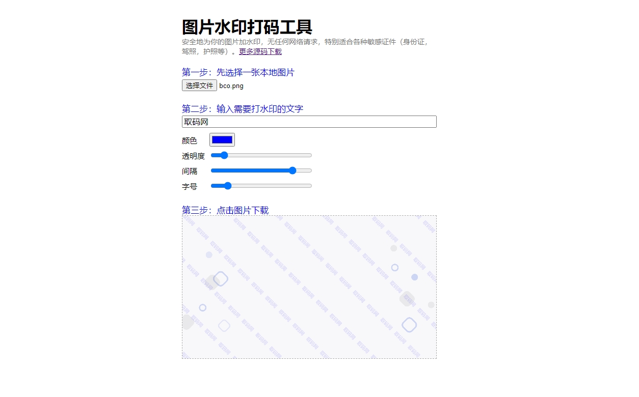 HTML图片在线加水印网站源码 自适应双端